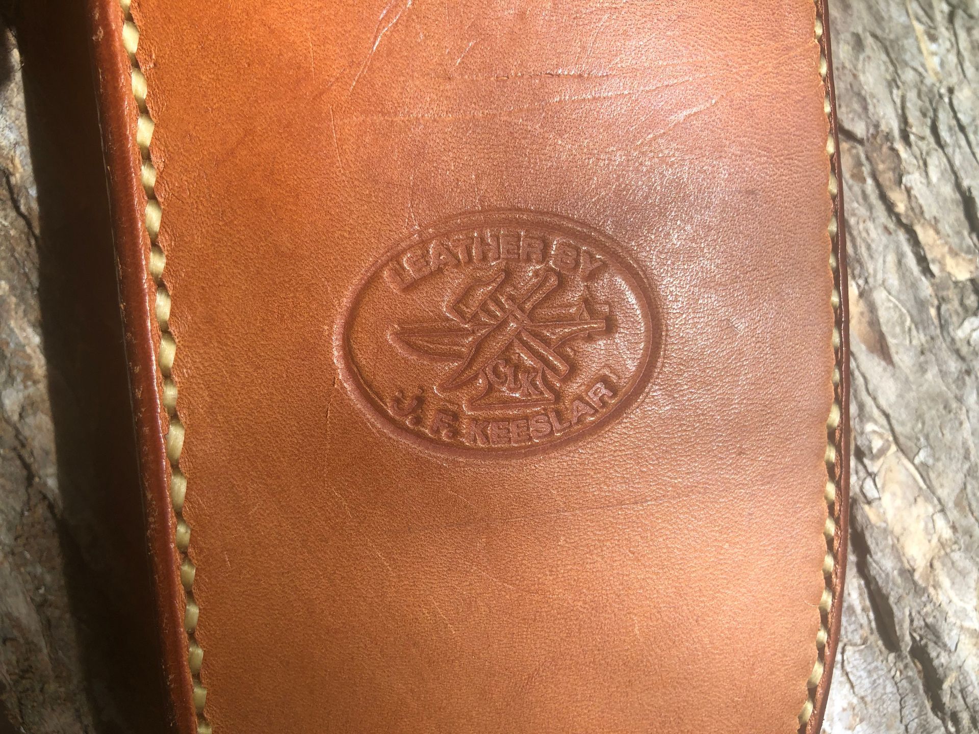 A rare original Camp Axe and “Brut de Forge” Skinning Knife set, hand-forged from an old file for me many years ago by my dear friend, fellow longbow hunter, and renowned Master Bladesmith, Joe Keeslar. The axe is 10 ½” OAL and the knife is 8 ½” OAL with a 5” hollow ground blade. Custom leather combination sheath by the maker. Joe thought he “might have made five or six sets similar to this over the years”.   Price:                                              SOLD