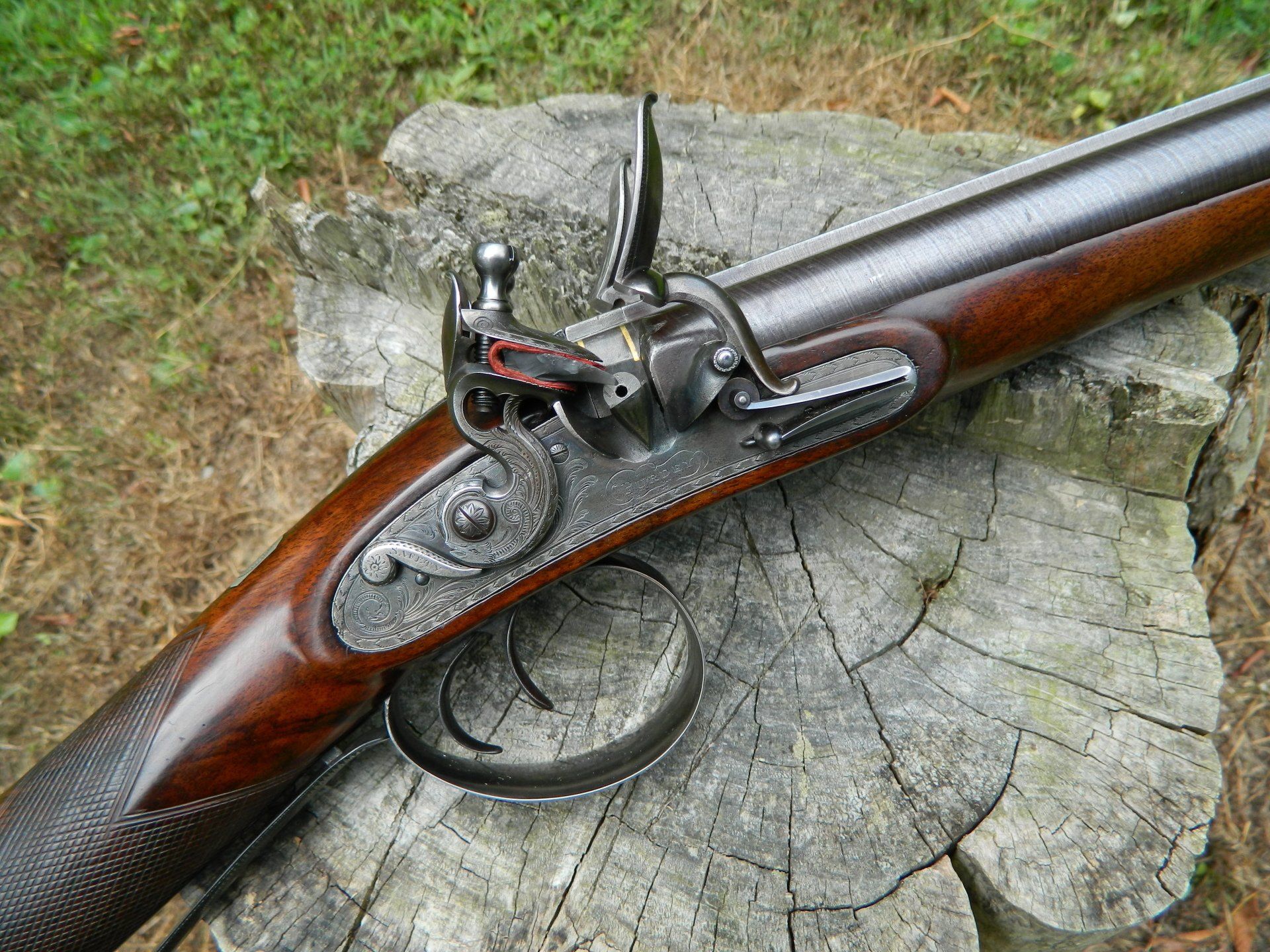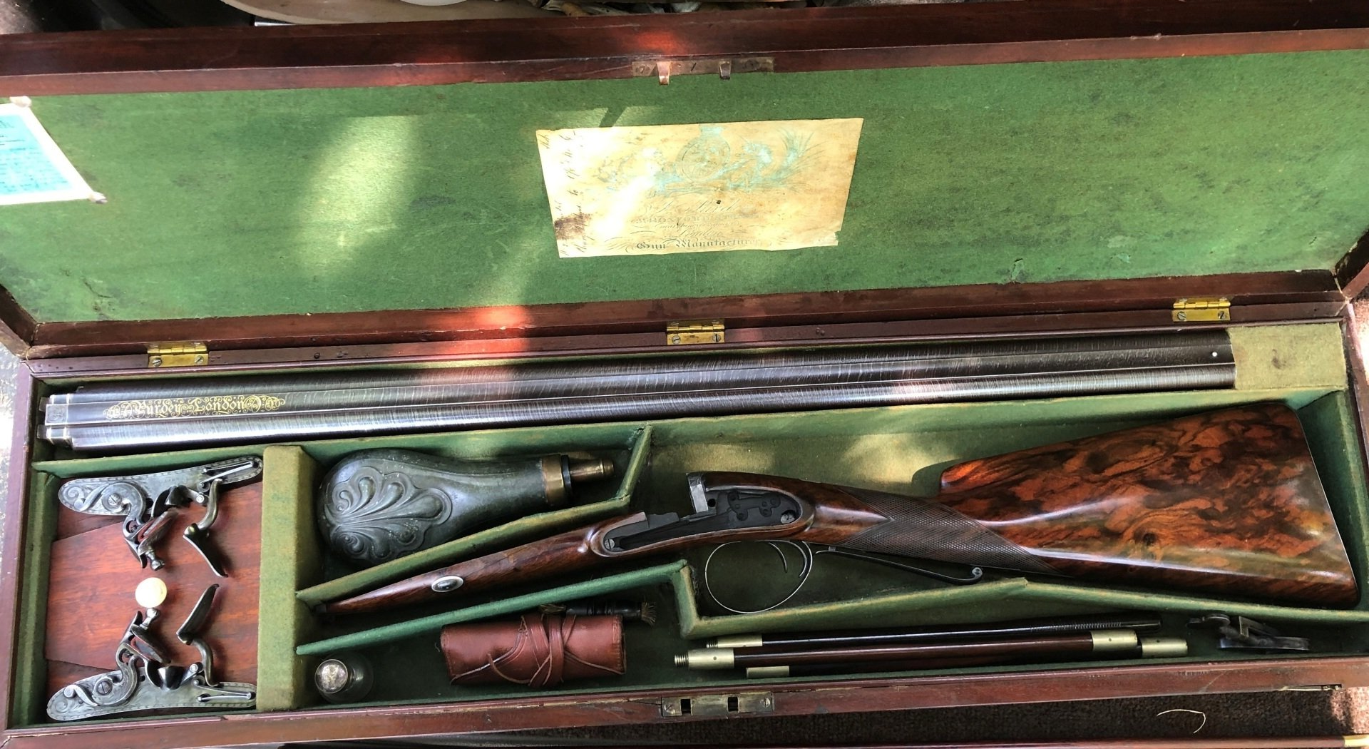 James Purdey, London. Extraordinarily rare 15-bore, Double-barreled, flintlock Sporting Gun, #224, made for Rev. Edward Missenden Love, Rector of Somersby, Yarmouth, in 1820. SOLD