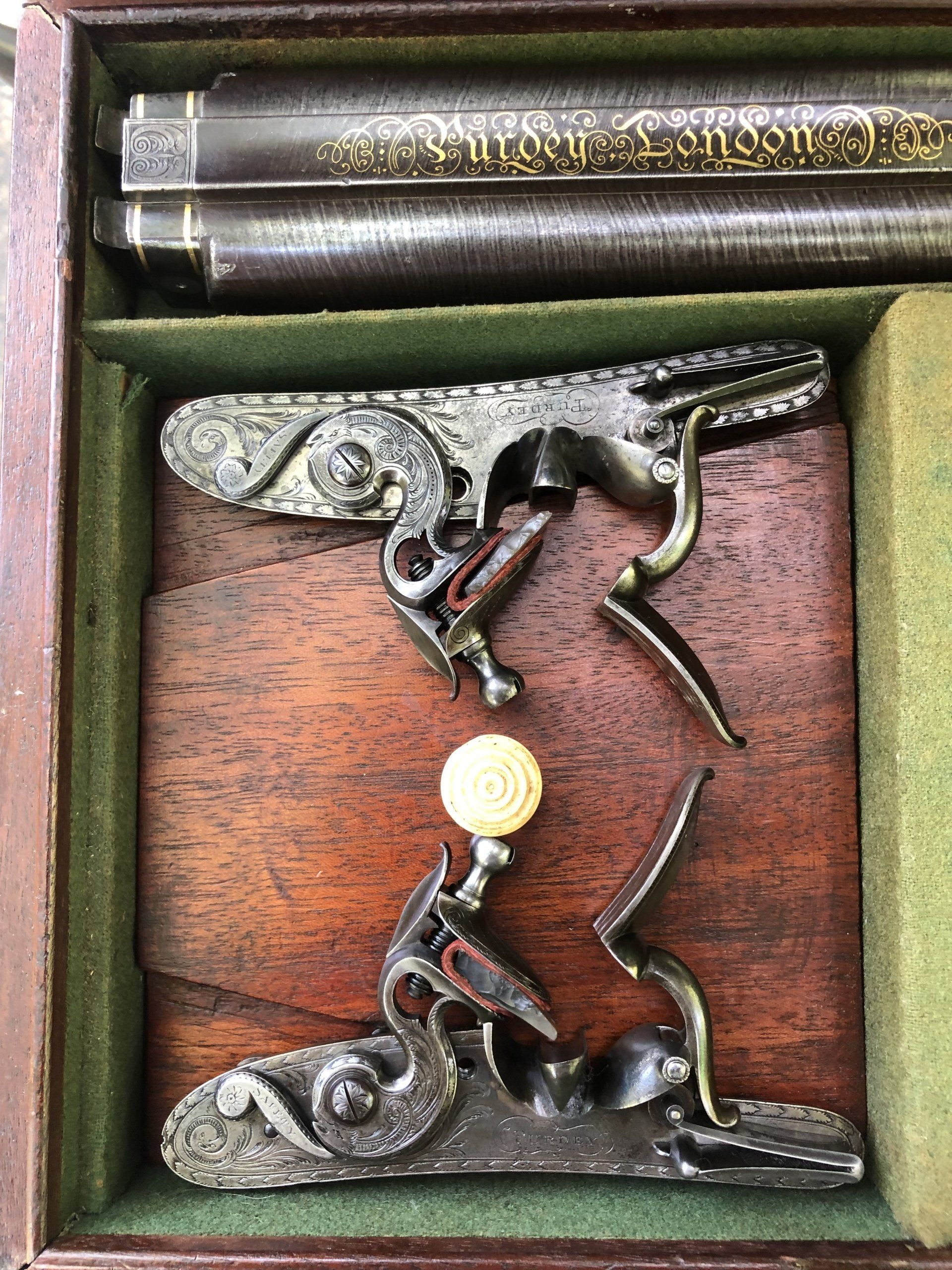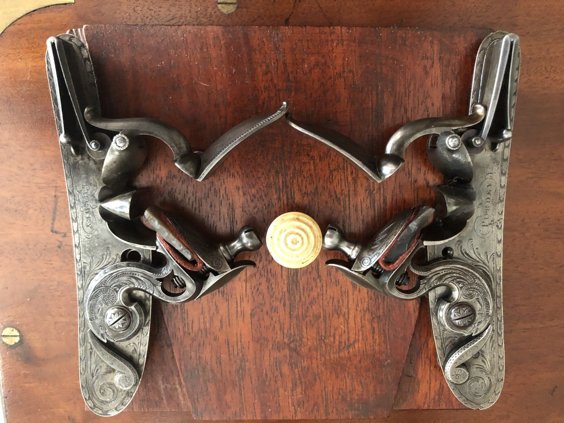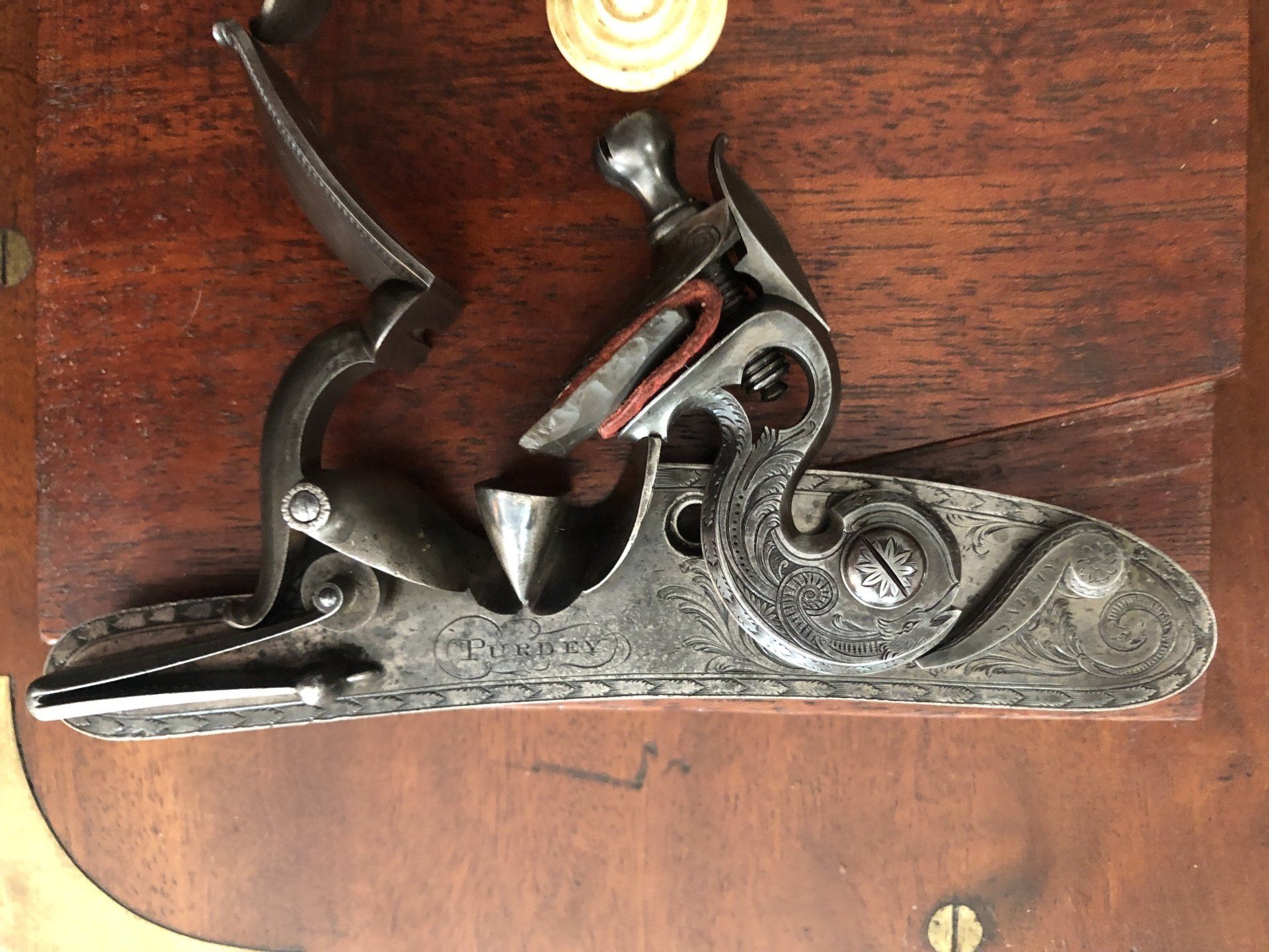 None of the finish is original, however, the gun is absolutely mechanically perfect and functionally as good as that day in 1820 that the Rev. Love picked it up at The Purdey Shop. Cased in an original Purdey case from a slightly later date and modified to fit #224.