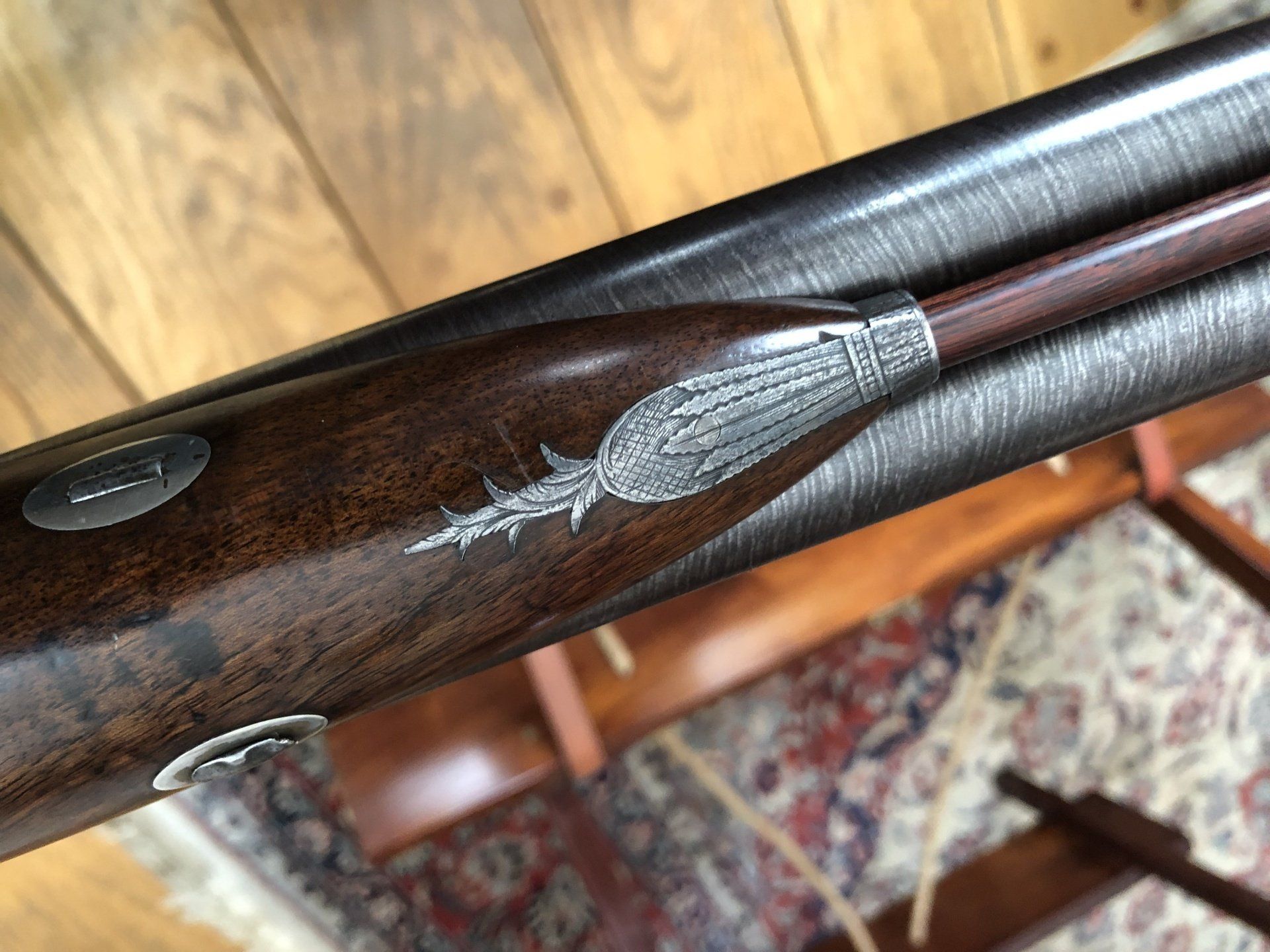 James Purdey, London. Extraordinarily rare 15-bore, Double-barreled, flintlock Sporting Gun, #224, made for Rev. Edward Missenden Love, Rector of Somersby, Yarmouth, in 1820. Weight: 6 lbs.7oz. Stock Dimensions: 14 3/8”x 1 3/8”x 1 7/8”x 1/8” cast-off.