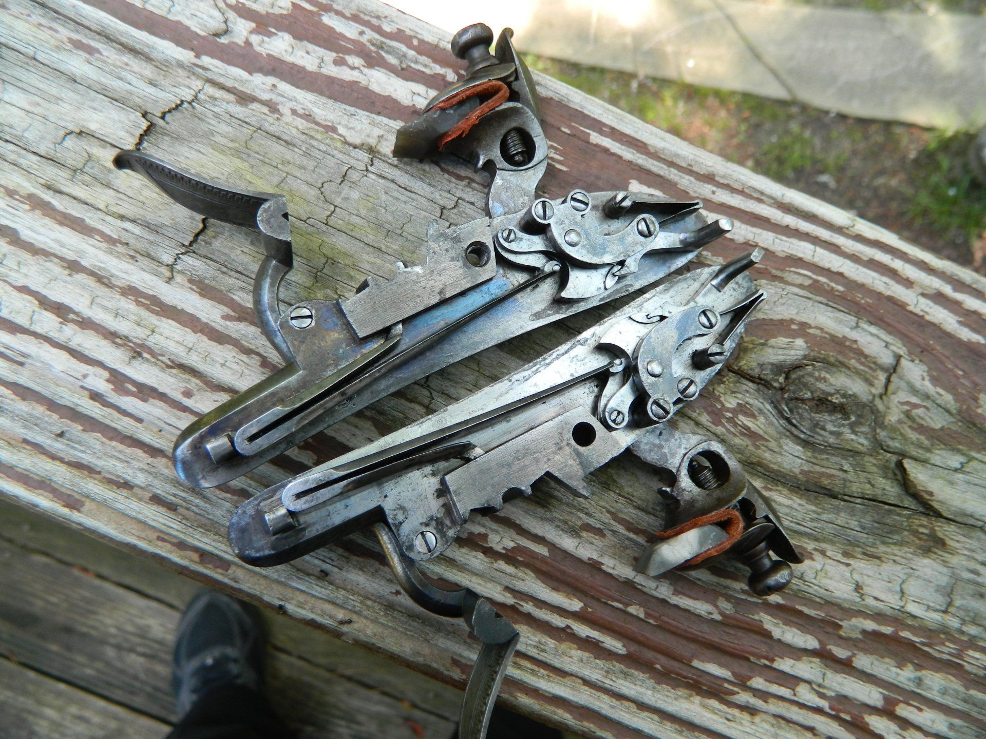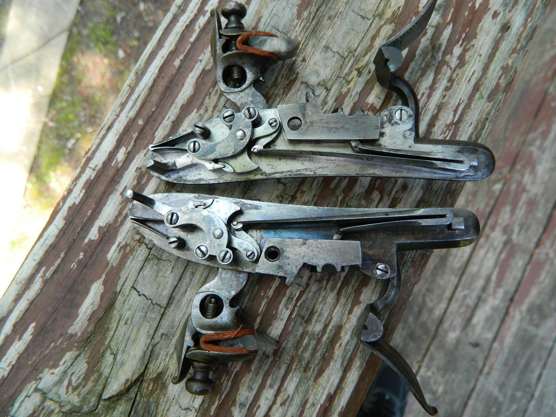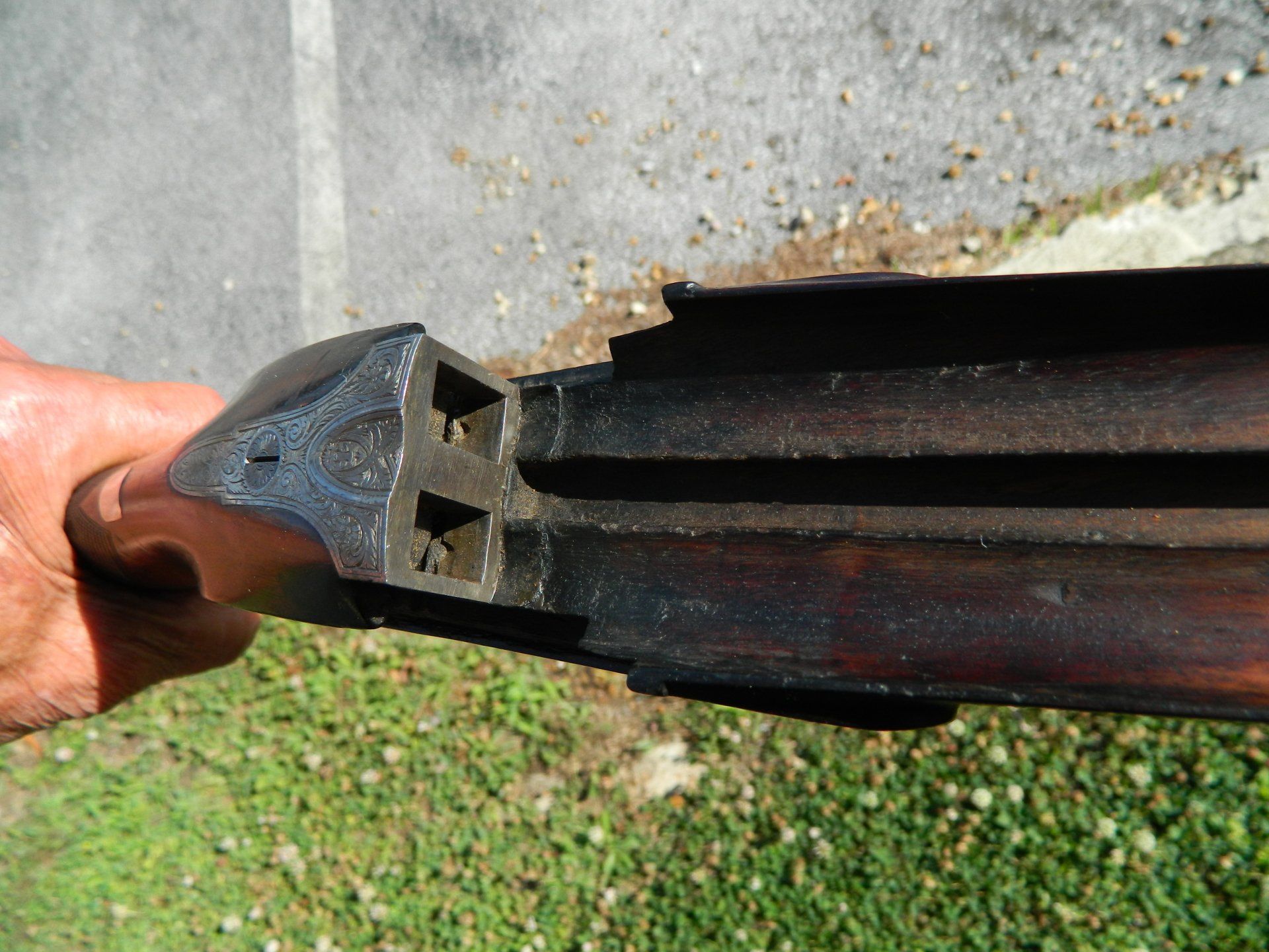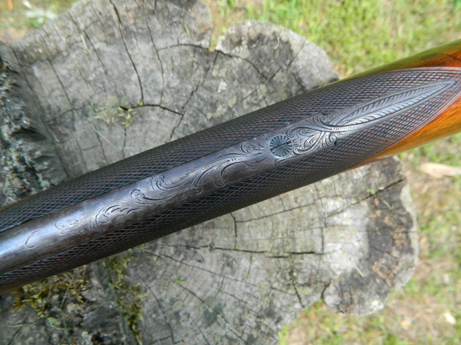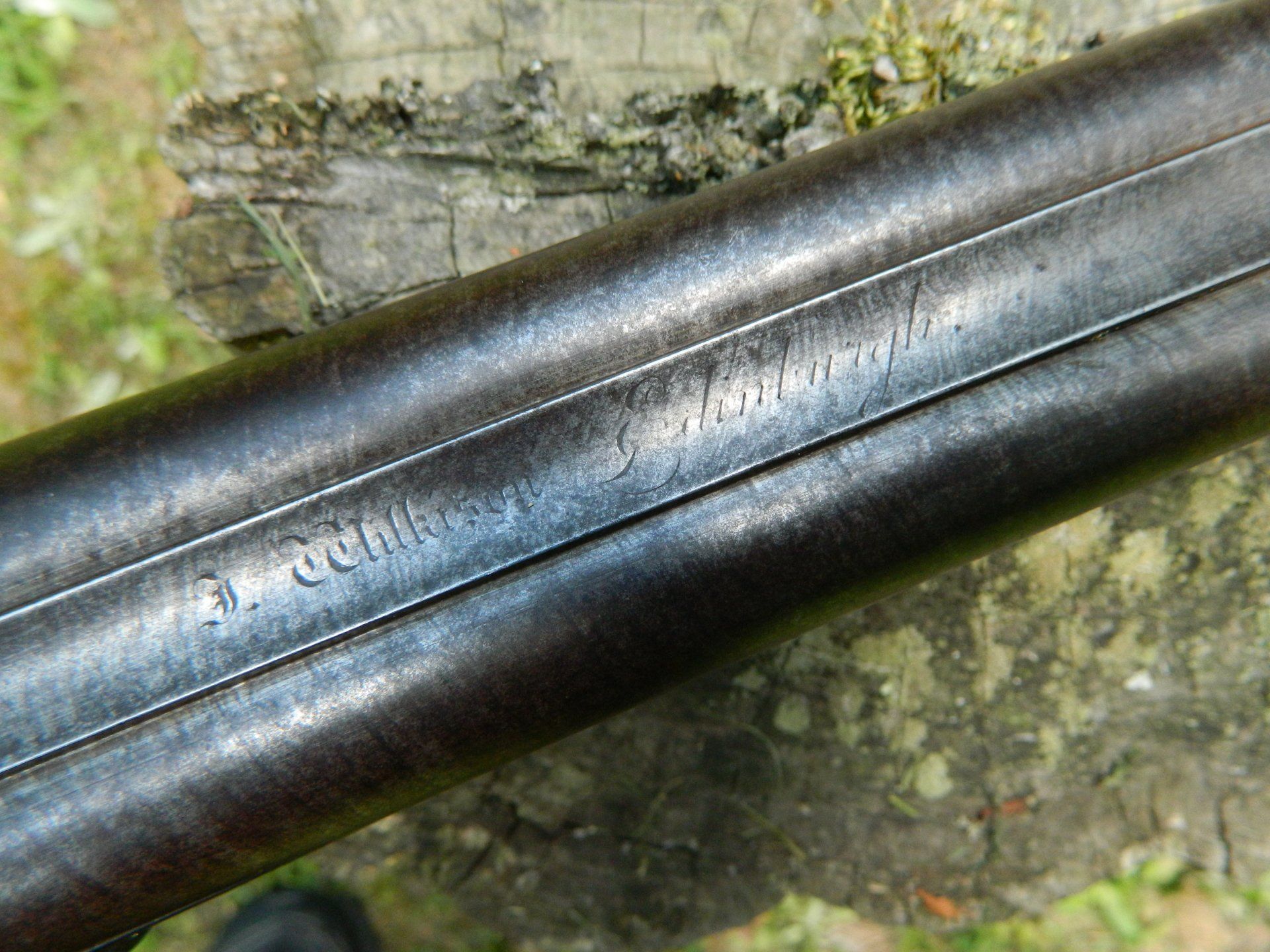John Manton and Son, London. An absolutely stunning 14-bore, cased double barreled, Flintlock Sporting Gun, #10571, made in 1830 for the Earl of Plymouth, Robert Henry Clive (1789-1854), grandson of Robert Clive (1725-1774) who was also known as "Clive of India". Weight: 7 lbs. Stock dimensions: 14 ¼" LOP. Superb 31 3/4" Damascus barrels with absolutely pristine breeches, unaltered bores (.701"/.701"), and thick walls (.056"/.056") at the muzzles, retaining most of the original external finish. Stepped-in breeches engraved and with platinum lines inlaid fore-and-aft also have platinum-lined touch holes and retain much of the original hardening colors. The ramrod is original as is the spare that accompanies the gun. The peerless quality locks, retaining much original finish have deep-V pans (without platinum divider bars) and gooseneck cocks. The hammers have been struck a few times but, like the breeches, show little-or-no evidence of ever being used in the field. Absolutely mechanically perfect with extremely powerful main and feather springs as you would expect from this Maker! Beautifully engraved iron mounts retain much of the original dark blue finish with some of the finish worn off the trigger guard tang and butt plate. Nicely figured walnut stock has a few handling marks and a minor repair to the mortise just above the bar of the right lock. Overall the stock retains virtually all the original finish with sharp, crisp, checkering at the wrist. Silver wrist escutcheon, showing no wear, is engraved with a griffin and torse over the owners initials, "RHC". The whole in the original mahogany case with a complete compliment of original accessories including spare ramrod, stout 3-piece loading rod, Hawksley pigskin leather-covered powder flask signed in ink by hand, " G.H.W. Windsor-Clive", over an abbreviation for the Coldstream Guards referring to Lieutenant Colonel George Herbert Windsor Windsor-Clive (1835-1918), the second son of Robert Clive and younger brother of the original owner. Also included in the case are a leather flint wallet containing spare flints and two spare side nails, wad punch, double turnscrew, pan brush, and original key to the case ... all in fine condition. Overall a magnificent, incredibly rare, original set, with impeccable provenance, mechanically absolutely perfect, the whole remaining in superb condition throughout, and suitable for the finest collection or use in the field today. Not likely you will ever see a finer example offered for sale !! Provenance: Made in 1830 for the Earl of Plymouth, Robert Henry Clive (1789-1854), grandson of Robert Clive (1725-1774) who was also known as "Clive of India". Purchased by my friend, Norm Blank, around 1962 directly from the Earl of Plymouth's estate in a sale facilitated by Keith Neal. Ownership passed to Lewis Drake in 2023. SOLD