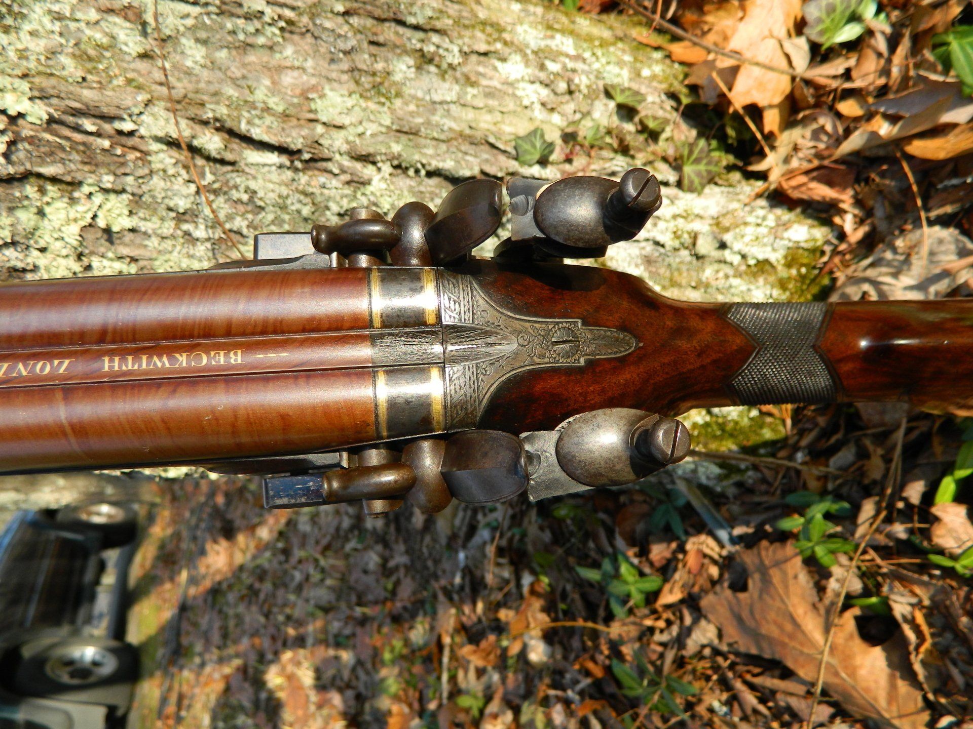 William Beckwith, London. Exquisite 15-bore, double-barreled flintlock Sporting Gun, #1215, ca. 1820. SOLD